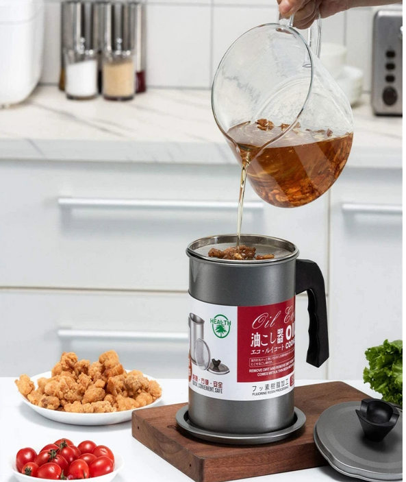 Make your kitchen more efficient with this useful oil filtering and storage pot.